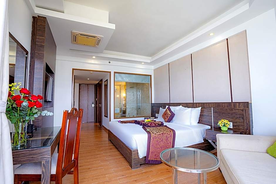 The spacious double room features air conditioning, an electric kettle, a balcony with sea views as well as a private bathroom boasting a bath. The unit has 1 bed.