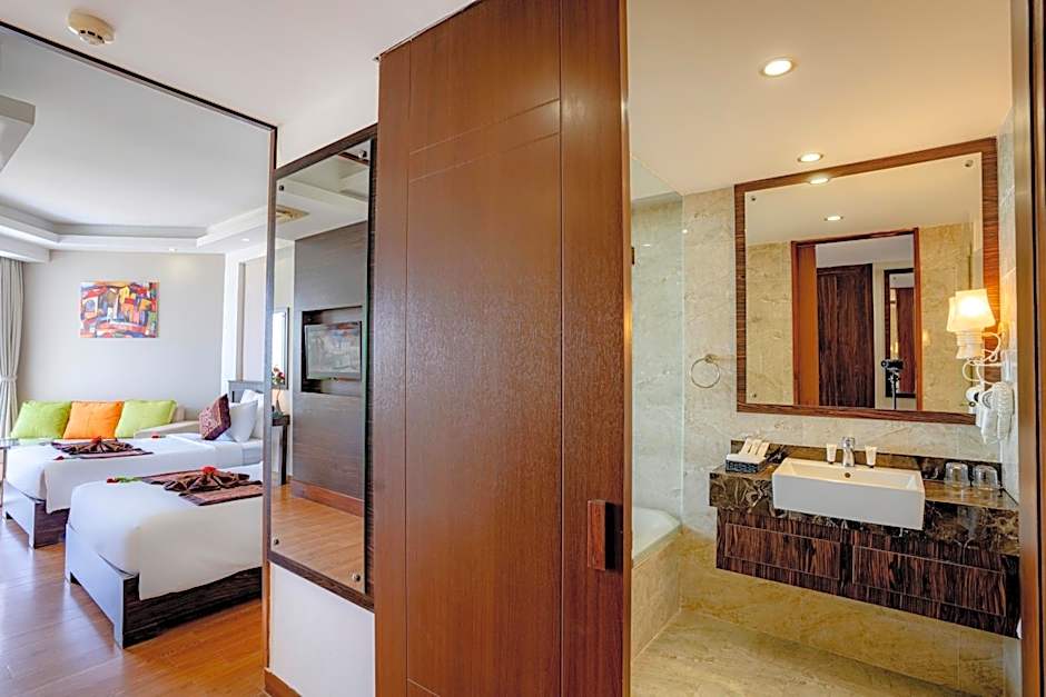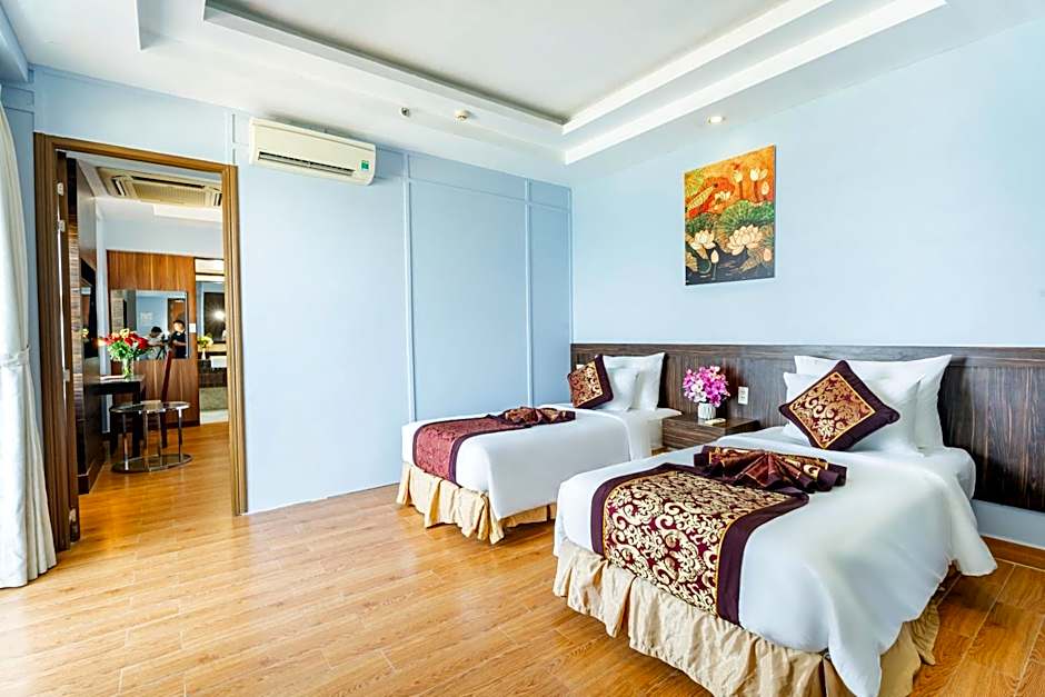 The spacious twin room features air conditioning, an electric kettle, a balcony with sea views as well as a private bathroom boasting a bath. The unit has 2 beds.
